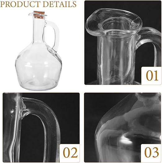 Kichvoe Dispensador de Azeite em Vidro 430 ml | Bule de Vinagre com Pegador e Tampa Doseadora à Prova de Fugas – Garrafa para Azeite, Molhos, Xarope e Condimentos