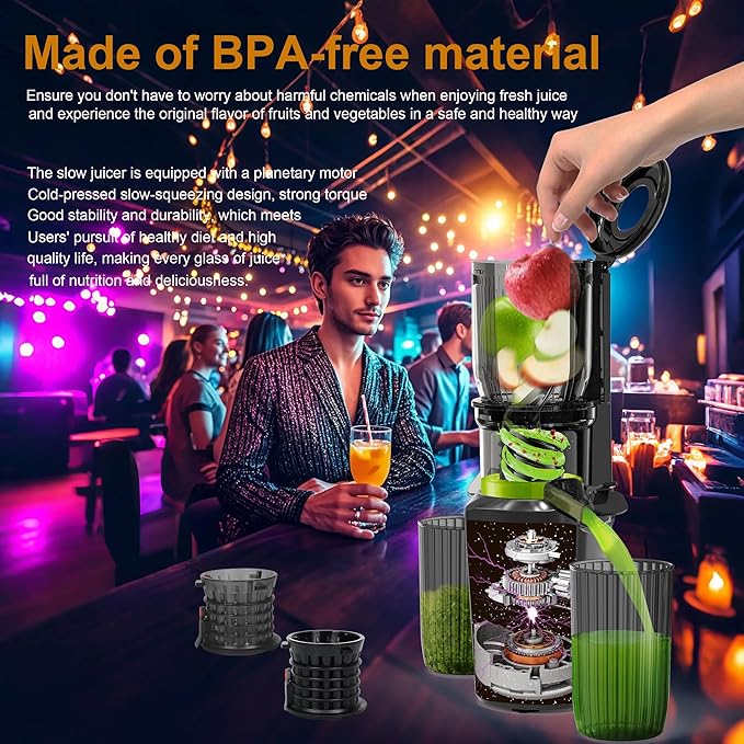 🥤 Máxima preservação de nutrientes: Tecnologia de extração lenta (cold press) que mantém até 3 a 5 vezes mais vitaminas e enzimas do que os espremedores tradicionais, garantindo sumos frescos, nutritivos e cheios de sabor.