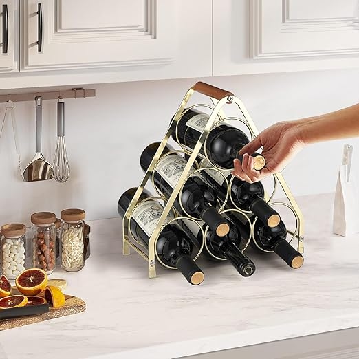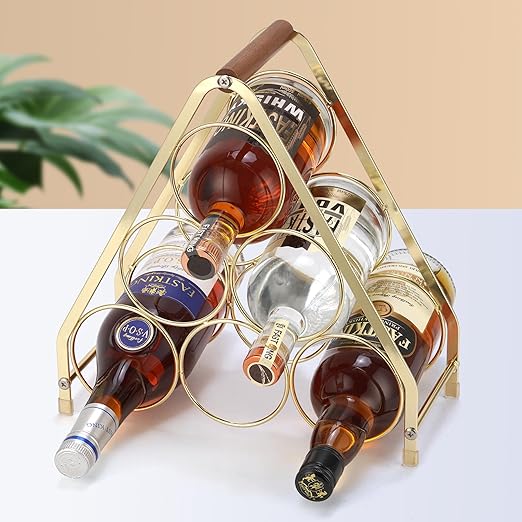 Garrafeira de Mesa em Metal Dourado – Design Moderno para 6 Garrafas, Compacta e Elegante para Cozinha, Sala ou Aparador
