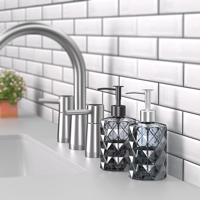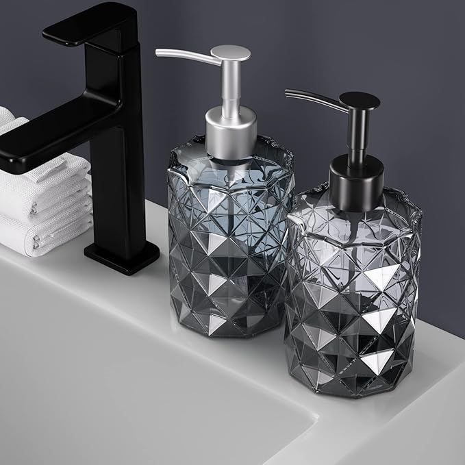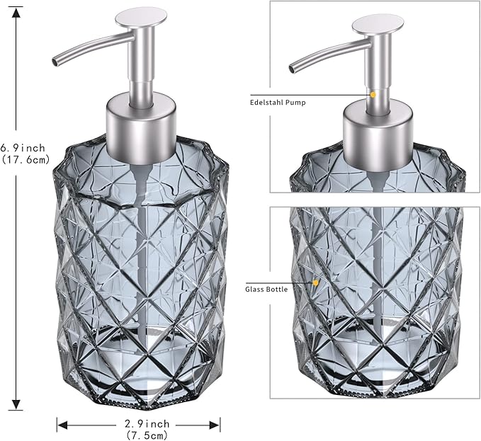 🖤 Design Moderno & Minimalista: Dispensador em vidro fosco mate com acabamento elegante e bomba resistente em aço inoxidável, ideal para dar um toque sofisticado à sua cozinha, casa de banho ou lavatório.