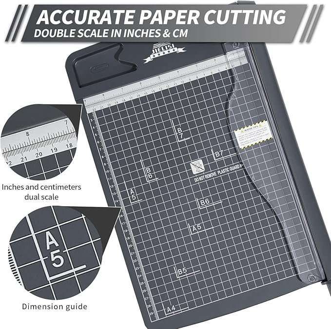 JIELISI Guilhotina Manual para Papel A4 (até 12 Folhas 80g) – Cortador de Papel de Alta Precisão com Grelha de Alinhamento, Régua em cm/polegadas e Sistema de Segurança