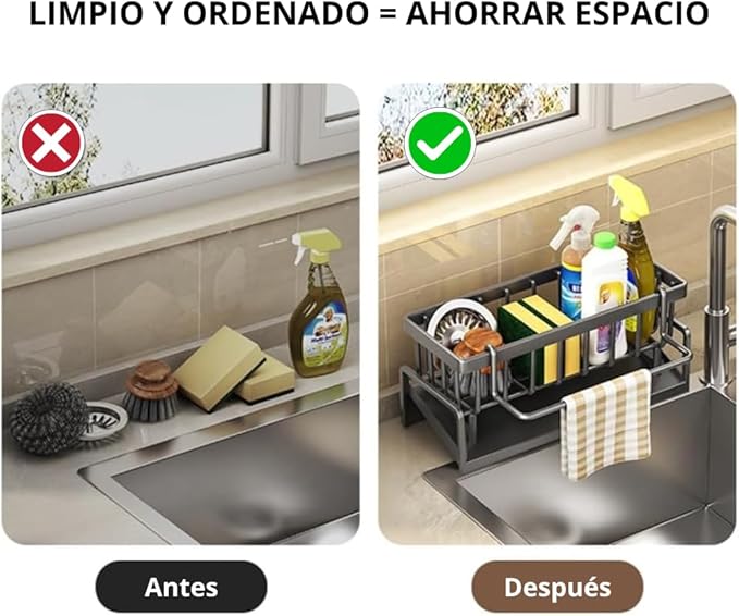 🏠 Poupa espaço – Organizador compacto (23 x 10 x 9 cm), ideal para garrafas de detergente, esponjas e panos.