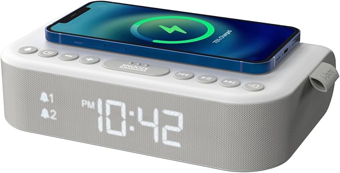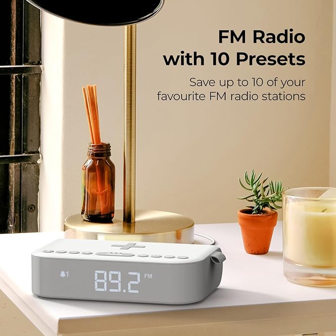 Compacto e elegante, é uma solução tudo-em-um para quem quer aliar som, carregamento e despertador num só dispositivo.