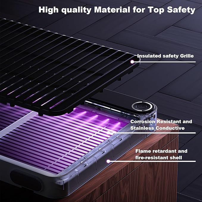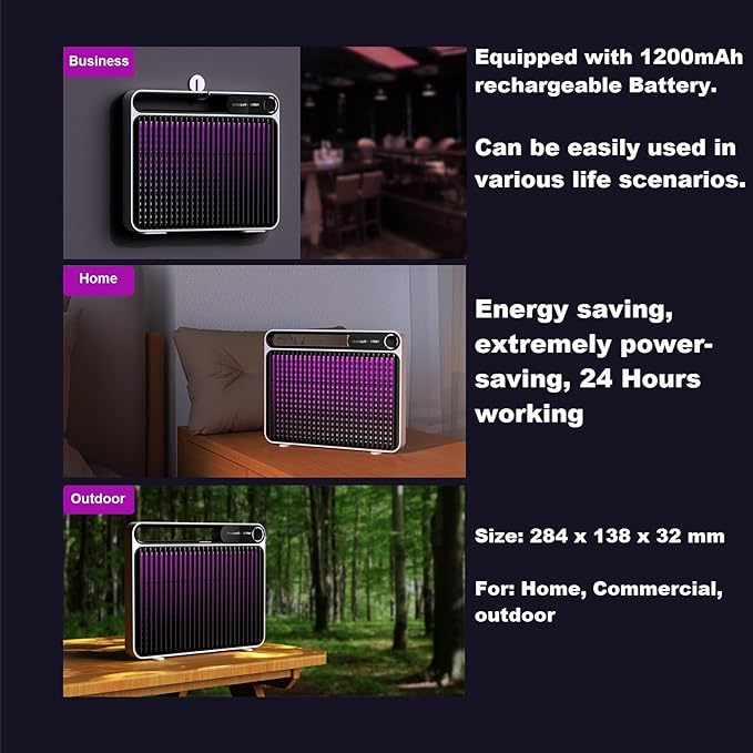 Com tecnologia de luz ultravioleta de 395 nm, atrai mosquitos, moscas, mariposas e outros insetos, eliminando-os através de uma rede elétrica de 1200V.