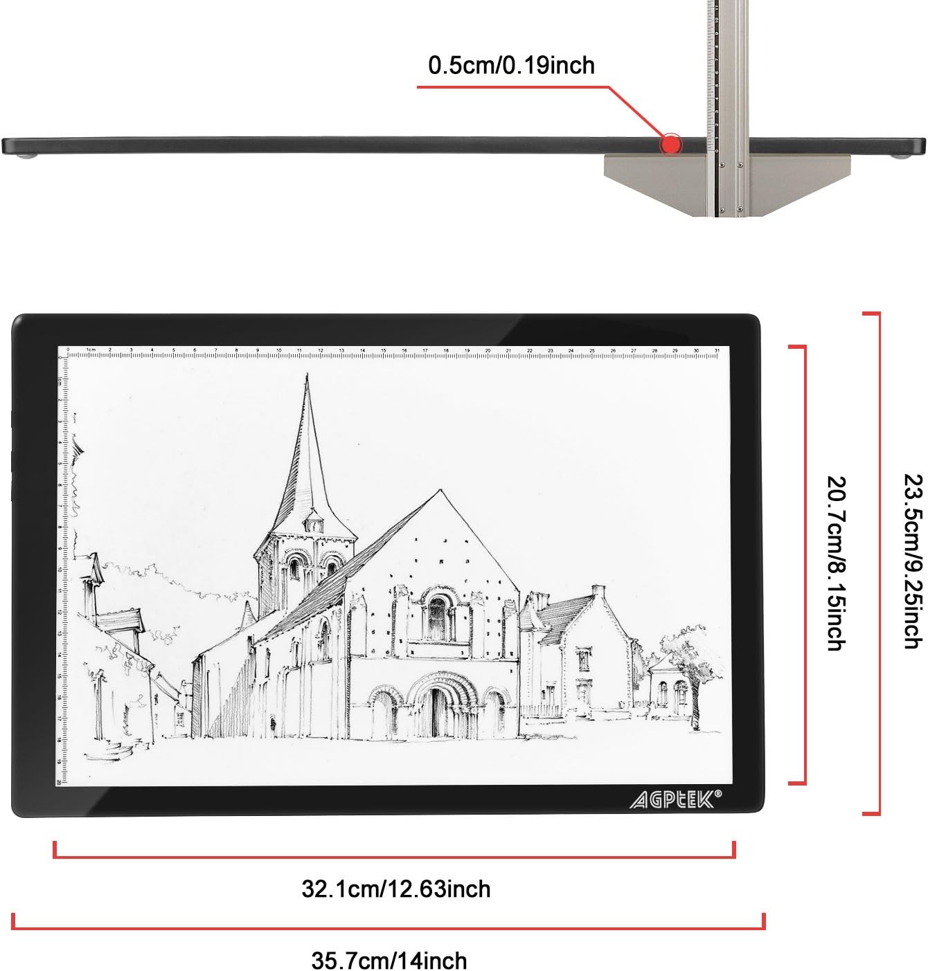 Design inovador com função magnética – Os ímanes fortes mantêm facilmente o papel fixo sobre a superfície da mesa de luz, ideal para desenho, esboço, cópia e verificação de negativos de filme.