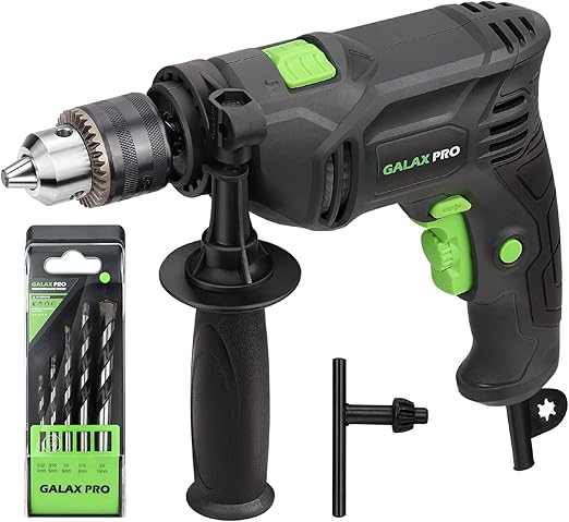 GALAX PRO Berbequim de Impacto 600W, 3000RPM, Punho Giratório 360°, Mandril 13mm, Função 2 em 1 Martelo & Berbequim, Velocidade Variável
