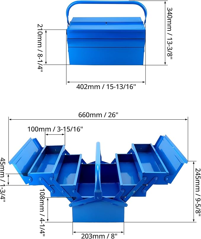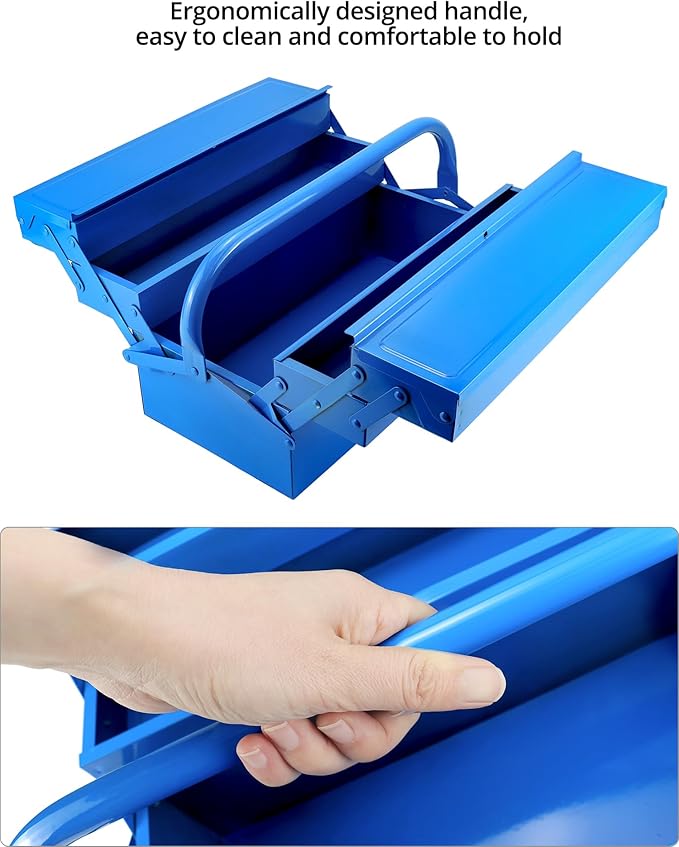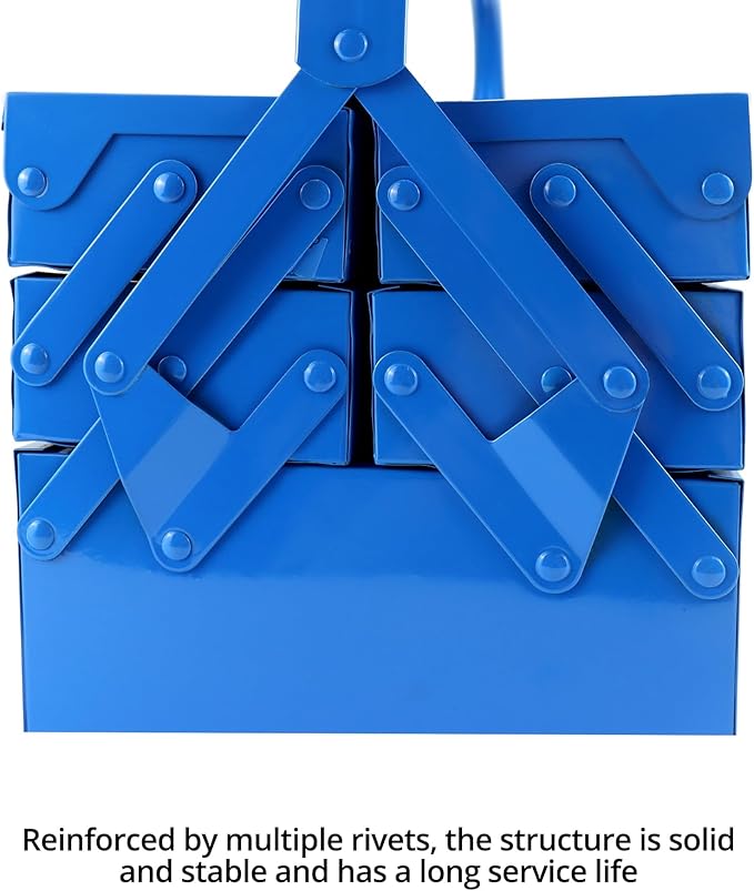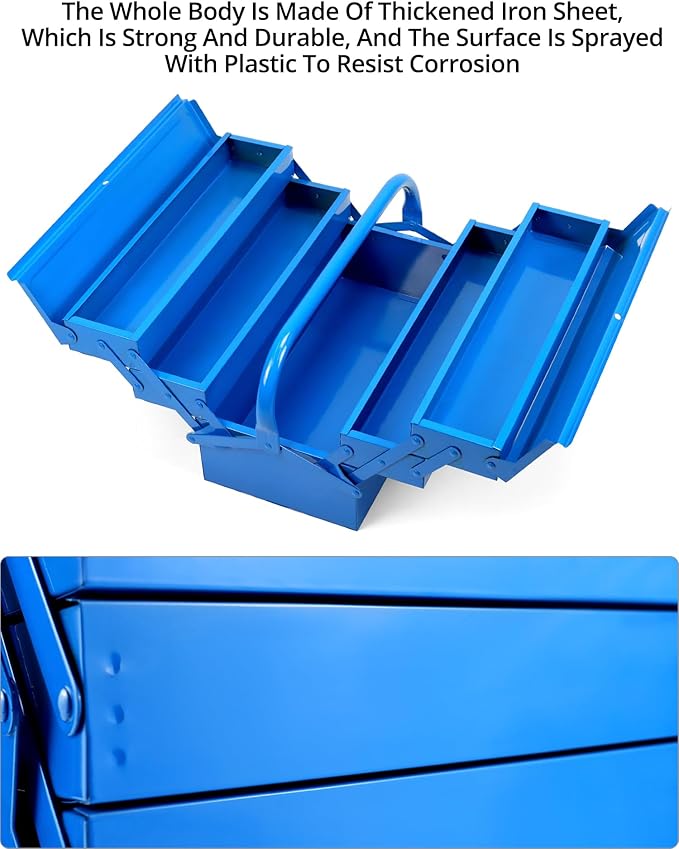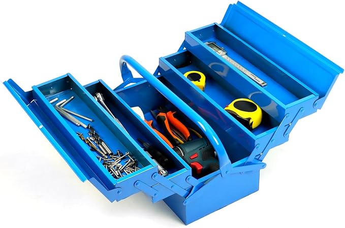 QWORK® Caixa de Ferramentas Metálica 5 Compartimentos – 400 x 200 x 200 mm, Aço Reforçado, Resistente à Corrosão, Azul