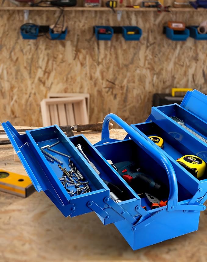 • 📦 5 compartimentos expansíveis: Grande capacidade de arrumação, permite organizar ferramentas manuais, acessórios e peças pequenas de forma prática.