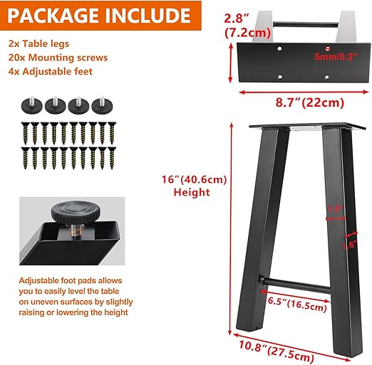 Pés de Mesa Homtone em Metal – 2 Unidades, Aço Carbono Industrial, Ideais para DIY Mesa de Jantar, Secretária ou Mesa de Café (H 40 x L 22 cm – Forma H)