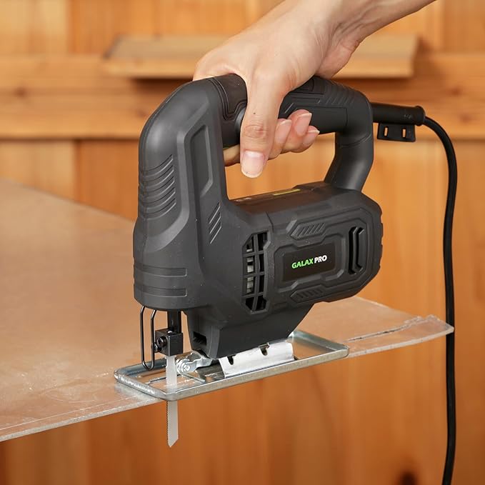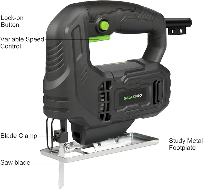 Velocidade variável + botão de bloqueio – Ajusta facilmente a velocidade de corte conforme o material. O botão de bloqueio permite trabalhar de forma contínua sem esforço extra, reduzindo a fadiga em utilizações prolongadas.