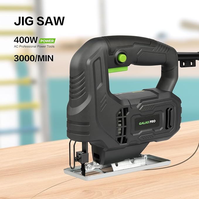 Serra Tico-Tico 400W, 3000RPM, Corte em Ângulo ±45°, Velocidade Variável, Botão de Bloqueio, com Lâminas para Madeira e Metal