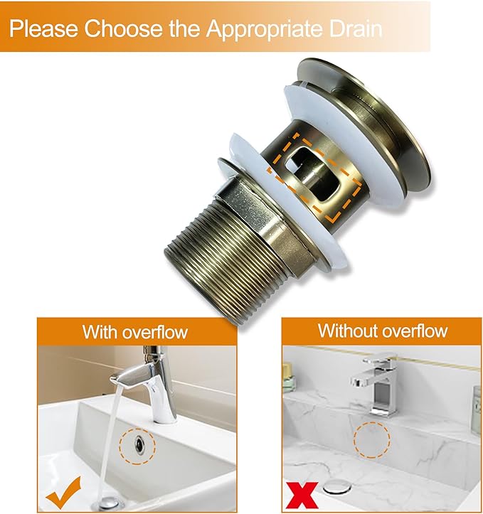 ✔️ Compatível com lavatórios padrão – encaixe universal de 1 ¼” com função de extravasamento, adequado para a maioria dos lavatórios e pias.
