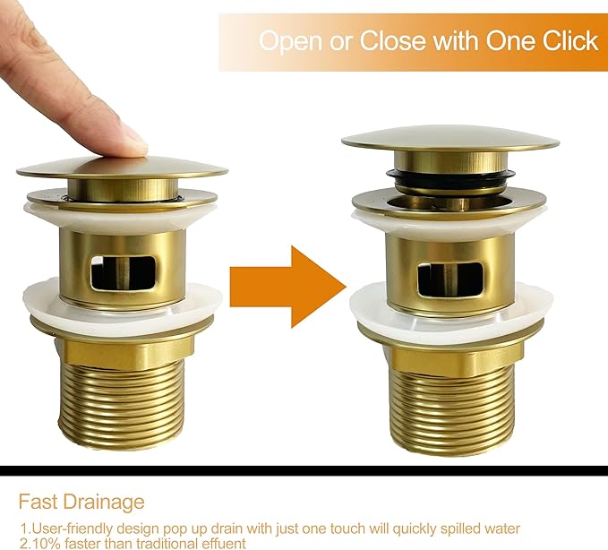 ✔️ Sistema Pop-Up prático – basta um toque para abrir ou fechar o ralo, graças ao núcleo em latão com mola de alta qualidade e excelente elasticidade.