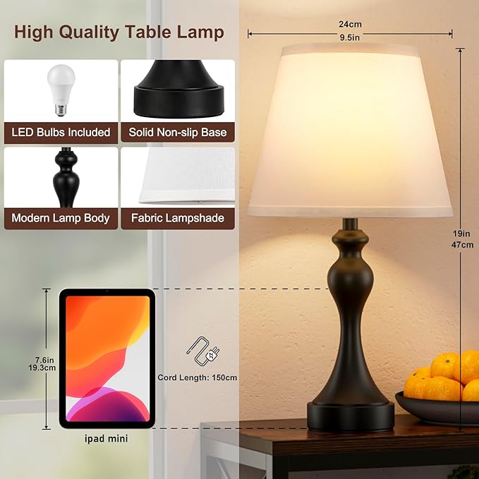 • Design minimalista e elegante – Conjunto de 2 candeeiros de mesa com abat-jour em linho branco e base metálica dourada, combinando estilo moderno e vintage. Ideais para quarto, sala, escritório ou mesa de cabeceira.