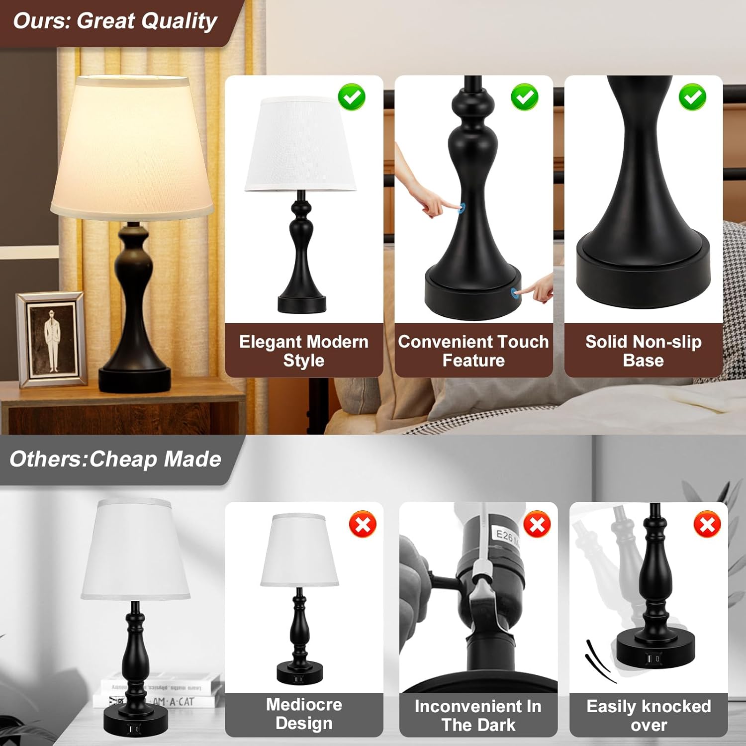 Conjunto de 2 Candeeiros de Mesa Táteis Reguláveis com Carregamento USB-A + USB-C