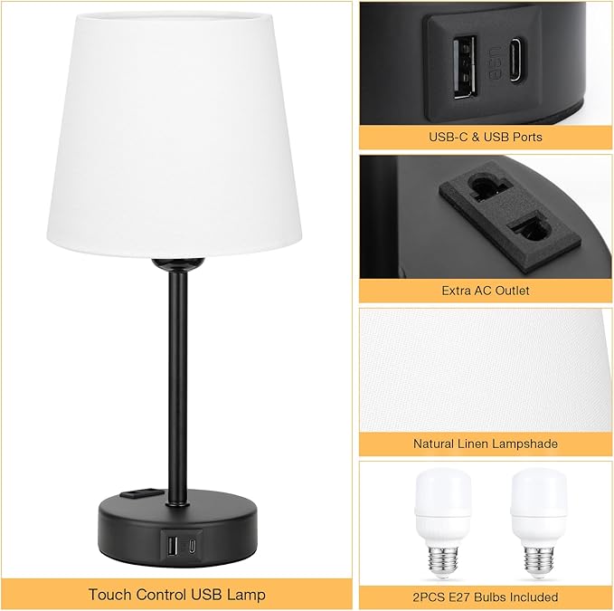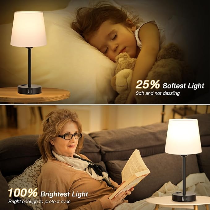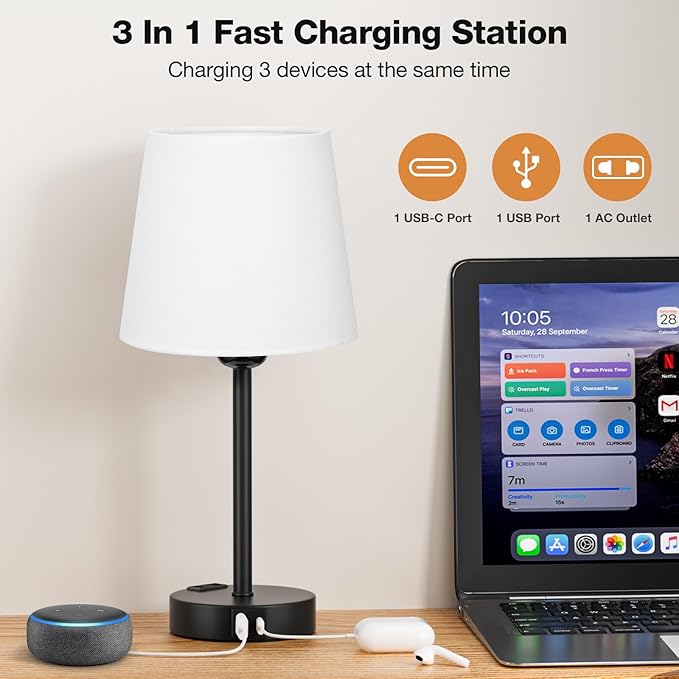 Este conjunto inclui 2 candeeiros de mesa com 2 portas USB-A + 2 portas USB-C + 2 tomadas CA, permitindo carregar até 6 dispositivos em simultâneo. Carregue facilmente o telemóvel, auscultadores, smartwatch e outros aparelhos, mesmo com o candeeiro desligado – mais praticidade para o seu dia a dia.