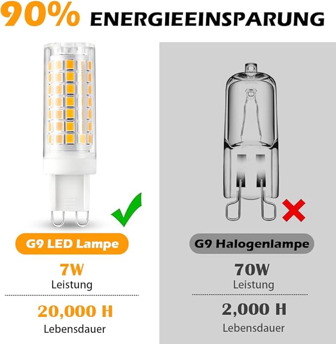 ✅ Potência eficiente: 7W LED = equivalente a 70-75W halogéneo, com poupança até 90% de energia