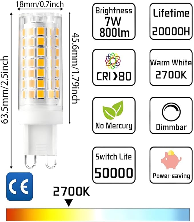 📦 Inclui: Pack de 6 lâmpadas LED G9 7W reguláveis