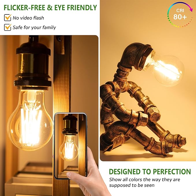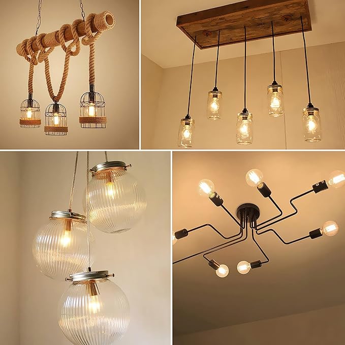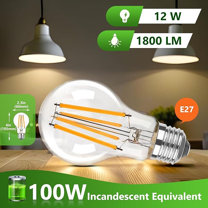 ✔️ 6 × Lâmpadas LED Edison E27 (12W, 2700K, 1800 lm)