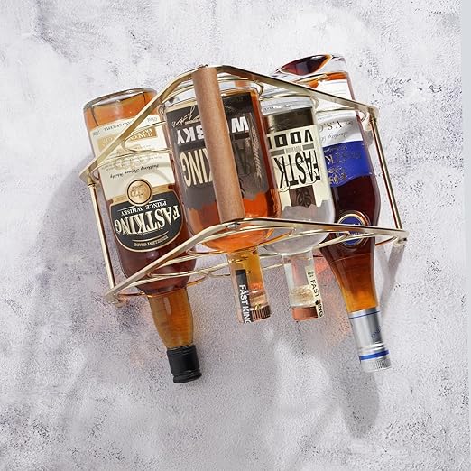 Garrafeira de Mesa em Metal Dourado – Design Moderno para 6 Garrafas, Compacta e Elegante para Cozinha, Sala ou Aparador