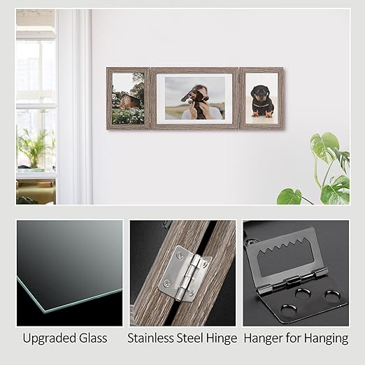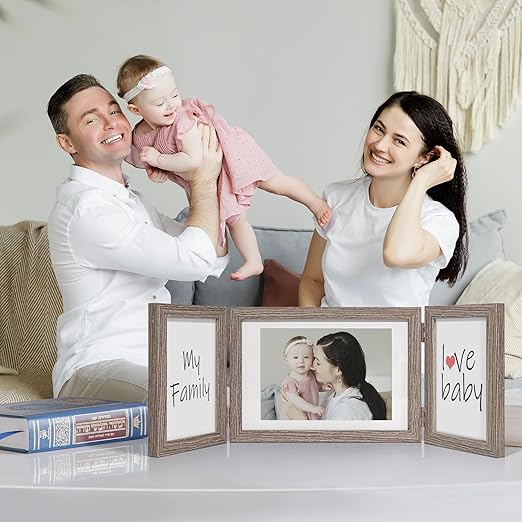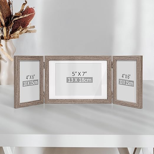 Tamanhos compatíveis: suporta duas fotos de 10 x 15 cm (nas laterais) e uma foto de 13 x 18 cm (ao centro).