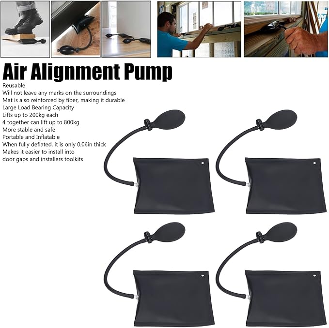 As almofadas de ar (Air Shims) são ideais para uma grande variedade de tarefas, como alinhamento preciso e nivelamento. Podem ser utilizadas como alavancas ou calços pneumáticos para móveis, portas, janelas, armários, eletrodomésticos, sistemas HVAC e instalações de canalização. Também podem ser usadas como ferramenta para libertar veículos ou reparações automóveis.