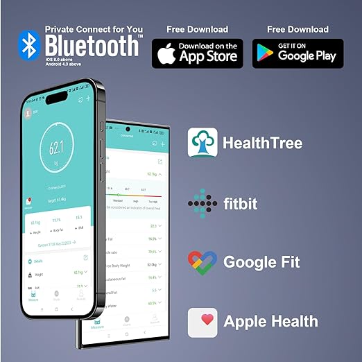 Com conectividade Bluetooth, pode ligar a balança à APP compatível com iOS e Android, permitindo criar perfis individuais para vários utilizadores e acompanhar em detalhe dados como: