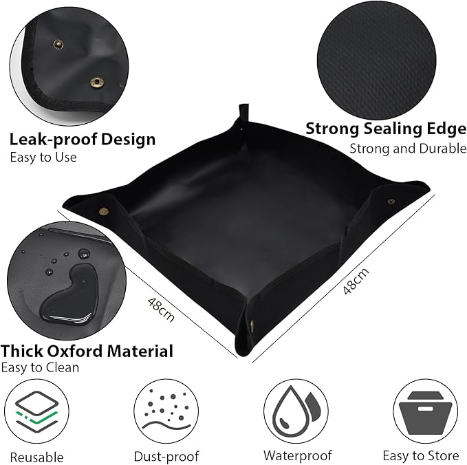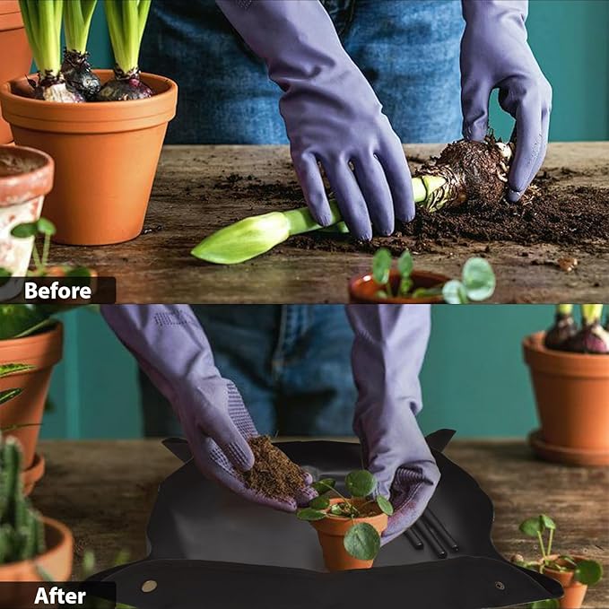 ✔️ Tapete à prova de fugas – feito em PVC e tecido Oxford, é impermeável e lavável, ideal para replantar sem sujar o chão ou a mesa. Dobra-se facilmente e ocupa pouco espaço.