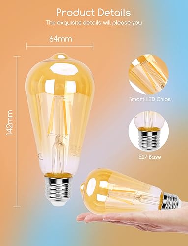 Aigostar Lâmpada Inteligente E27 Alexa 6W WIFI ST64 Código Vintage 4 Unidades