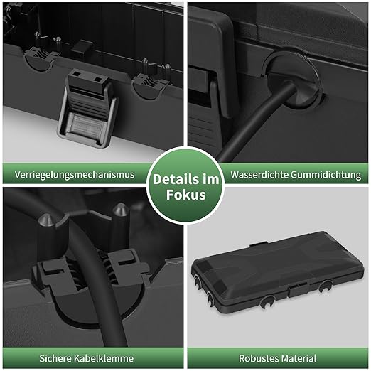 Vedação eficiente que envolve o cabo ao fechar a tampa, impedindo a entrada de água e poeiras.