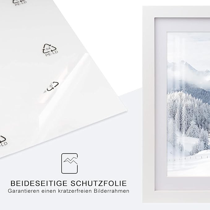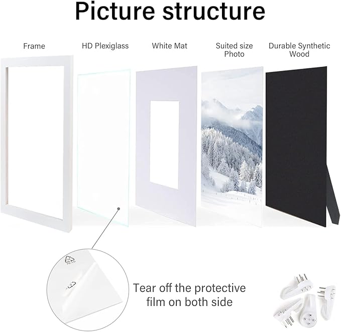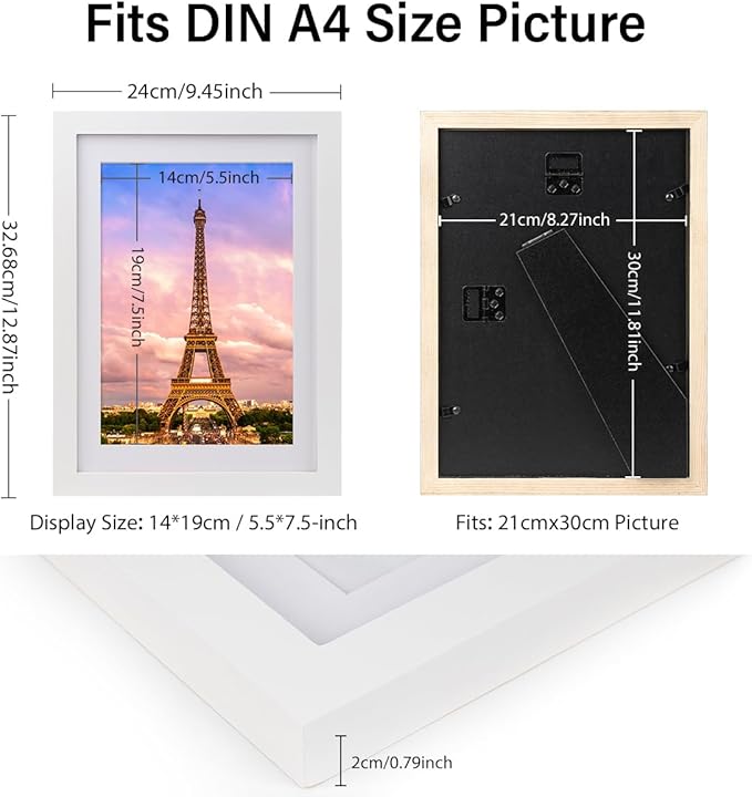 O conjunto Joyshare® traz 3 molduras elegantes em madeira MDF branca com vidro acrílico resistente a quebras, perfeitas para dar destaque às suas fotografias, certificados ou ilustrações favoritas.