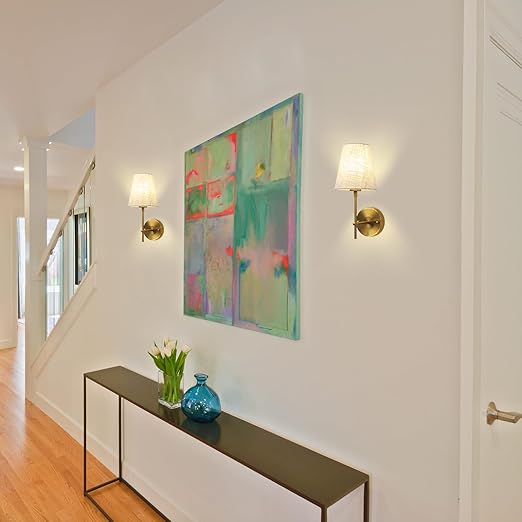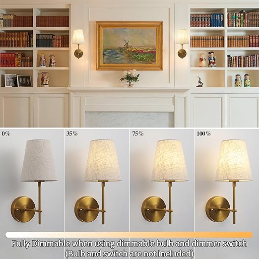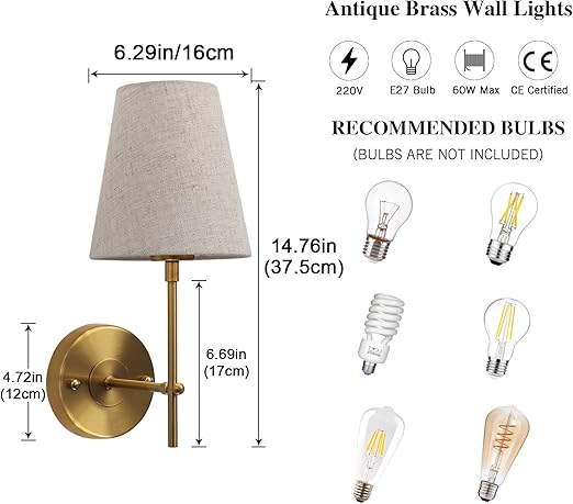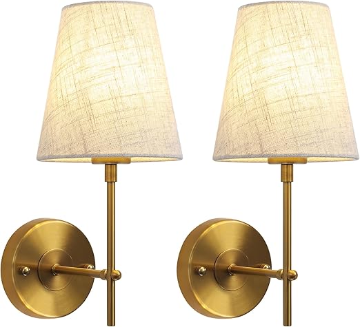 Conjunto de 2 Canddeiros de Parede Vintage – Candeeiros Dourados com Abajur em Tecido, Elegantes para Quarto, Sala, Escadas e Mais 🏡 [Classe A]