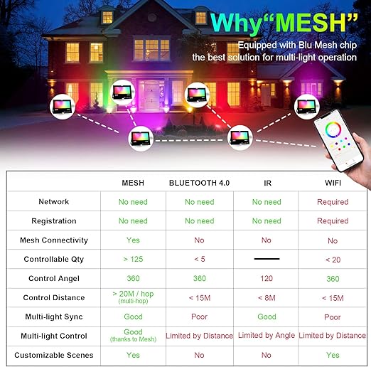 12 modos dinâmicos + cenas personalizadas: altere cores, efeitos e crie ambientes únicos para festas, churrascos, jardim, fachadas ou decoração sazonal.