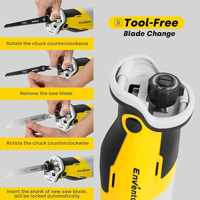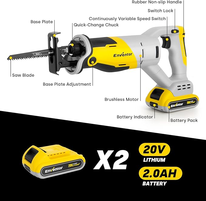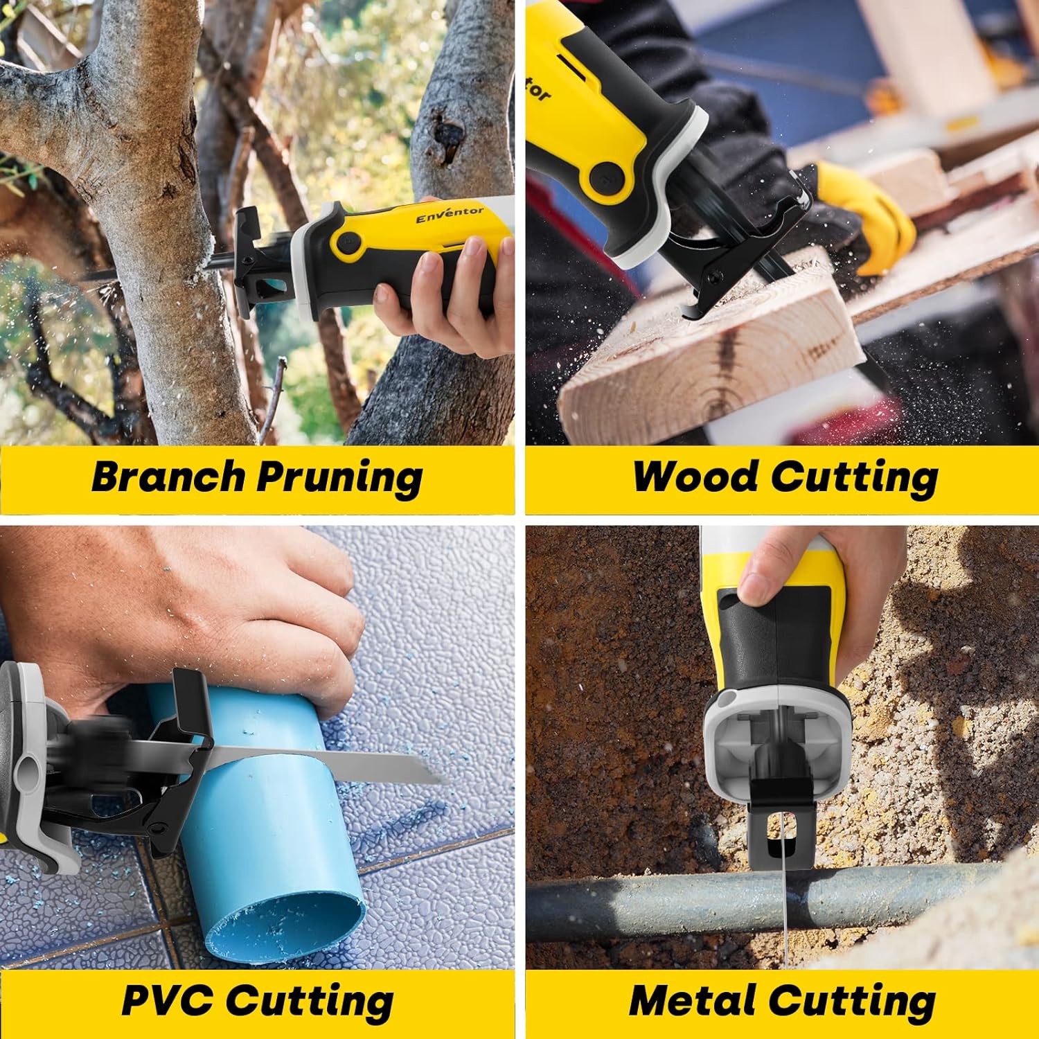 Velocidade variável: Gatilho de 0–3000RPM e curso de 22mm para cortes rápidos e eficientes em diferentes materiais (madeira, metal, PVC, ramos).