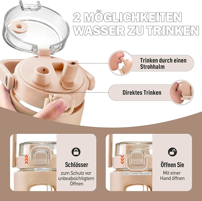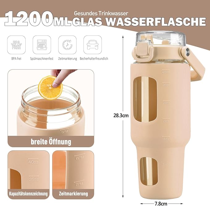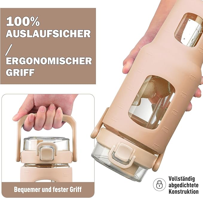 A capa de silicone inclui marcadores horários, ajudando-te a controlar a ingestão de água ao longo do dia.