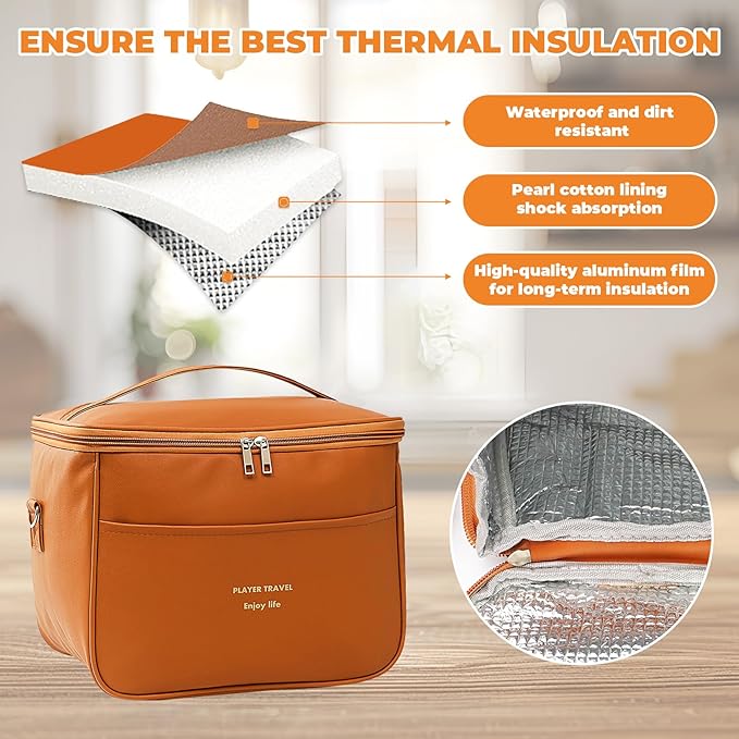 ❄️ Tripla proteção térmica: Algodão perolado + folha de alumínio, mantém os alimentos quentes ou frios até 4h e frescos até 8h.