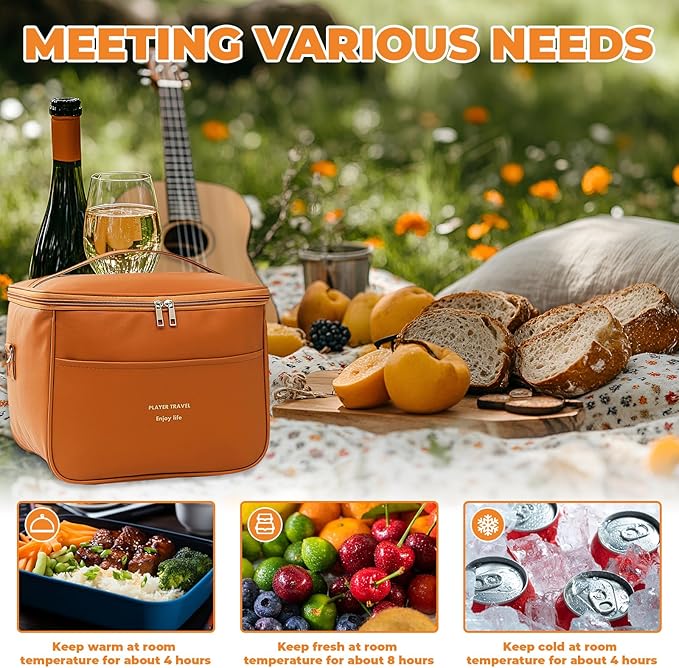 🍱 Capacidade prática de 7L: Espaço para 2 recipientes, snacks, fruta e bebidas – ideal para trabalho, viagens ou piqueniques.