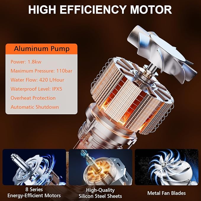 Com uma pressão máxima de 110 bar e vazão de 420 L/h, esta lavadora de alta pressão remove facilmente sujidades difíceis de: