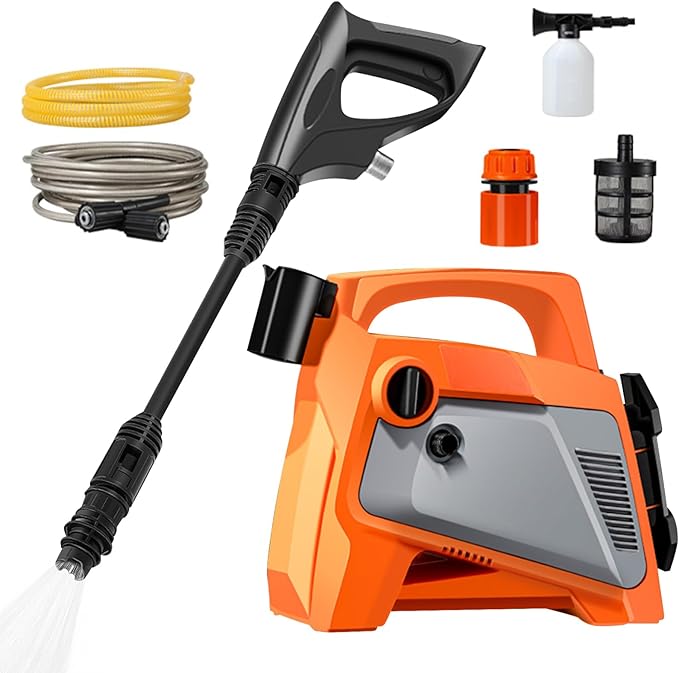 Inclui pistola de limpeza com lança extensível e bico multifunções: