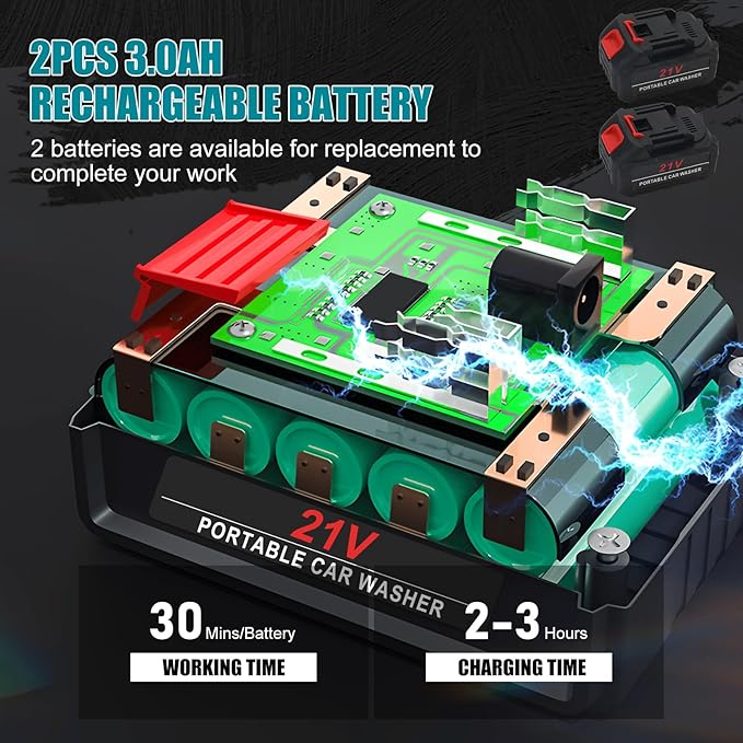 Funciona com 2 baterias de 3000 mAh já incluídas + carregador.