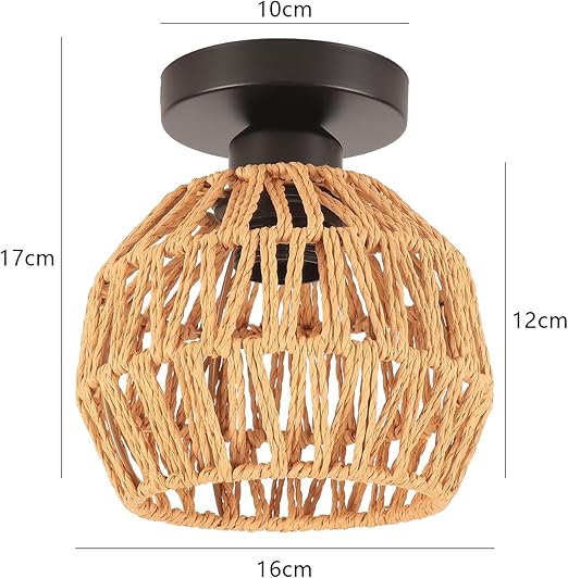 O abajur é feito em metal resistente com acabamento galvanizado, o que evita a oxidação. A corda de papel de alta qualidade acrescenta textura e sofisticação ao design.