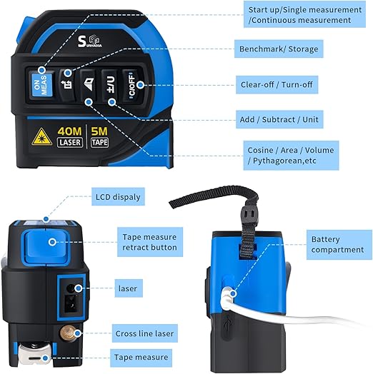 Ideal para obras, bricolage, instalação de móveis, decoração, ou medições em interiores e exteriores.