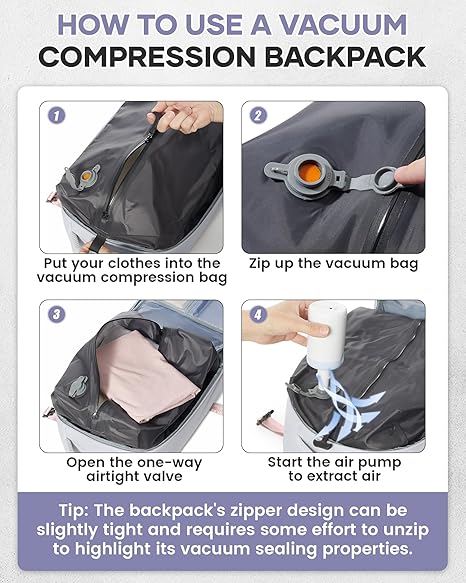 A mochila inclui válvulas de vácuo que permitem comprimir rapidamente o conteúdo usando: