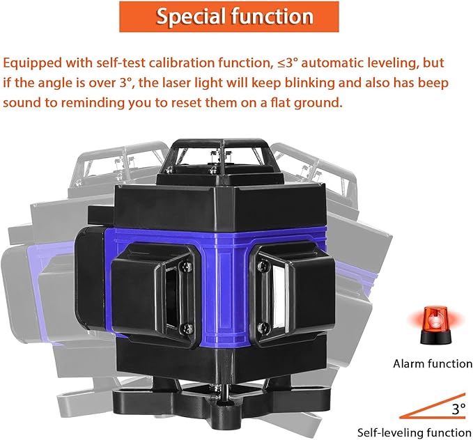 🎯 Auto-nivelamento ±3°: Sistema inteligente de calibração automática. Caso o desvio seja superior, o feixe pisca e emite aviso sonoro.