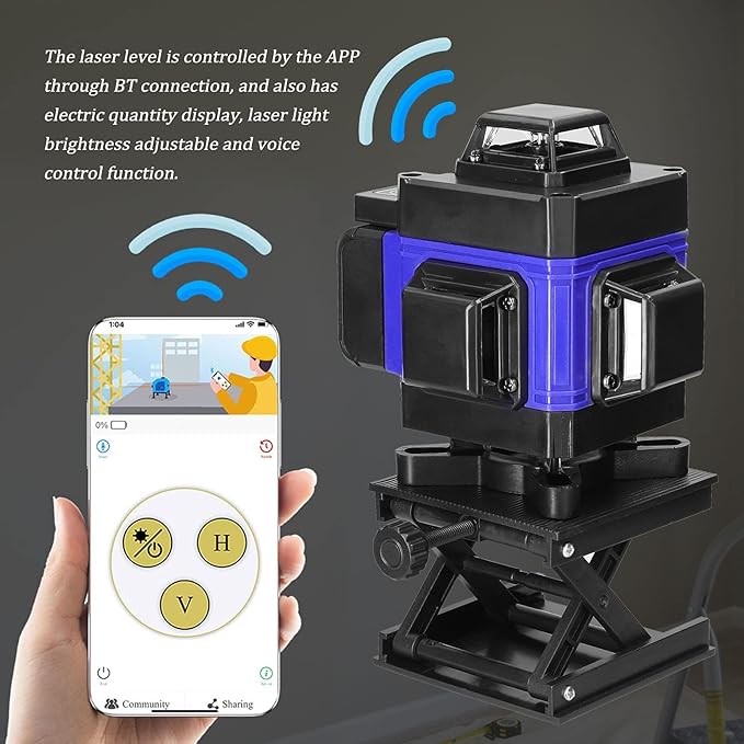📱 Controlo remoto e via APP: Ajuste linhas horizontais (H) e verticais (V), regule a intensidade do laser e ative comandos por voz diretamente pelo telemóvel.