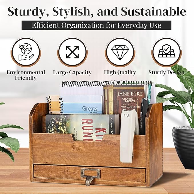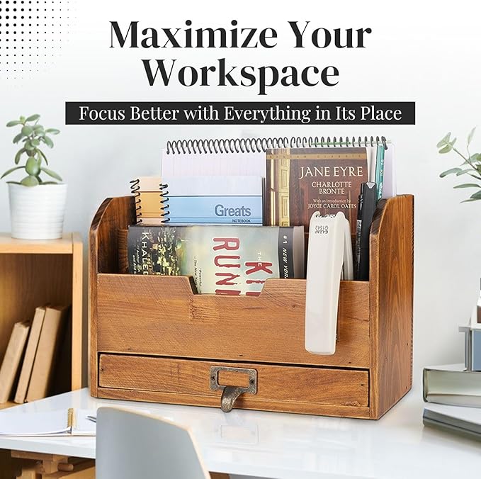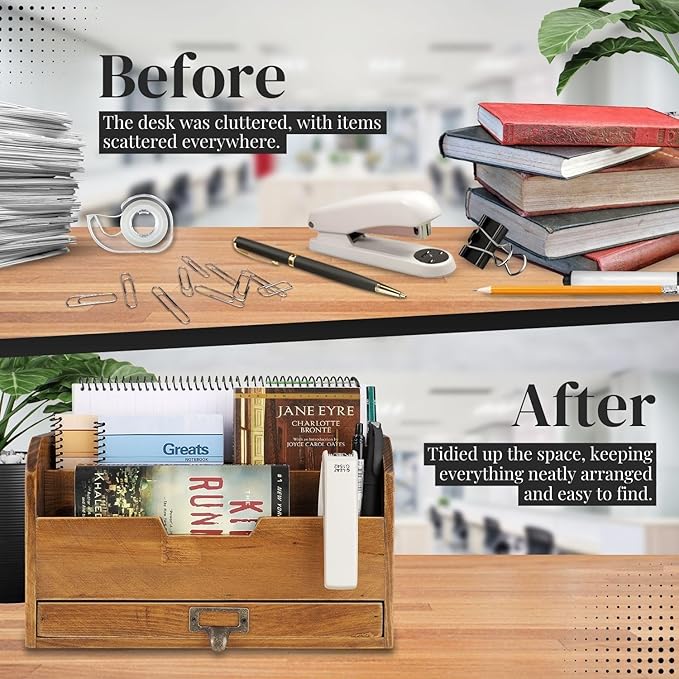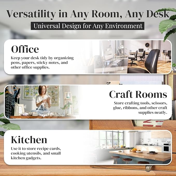Mantenha a sua secretária livre de desordem com os 3 compartimentos espaçosos, perfeitos para armazenar documentos, blocos de notas, cadernos, cartas, pastas A4 e material de escritório.