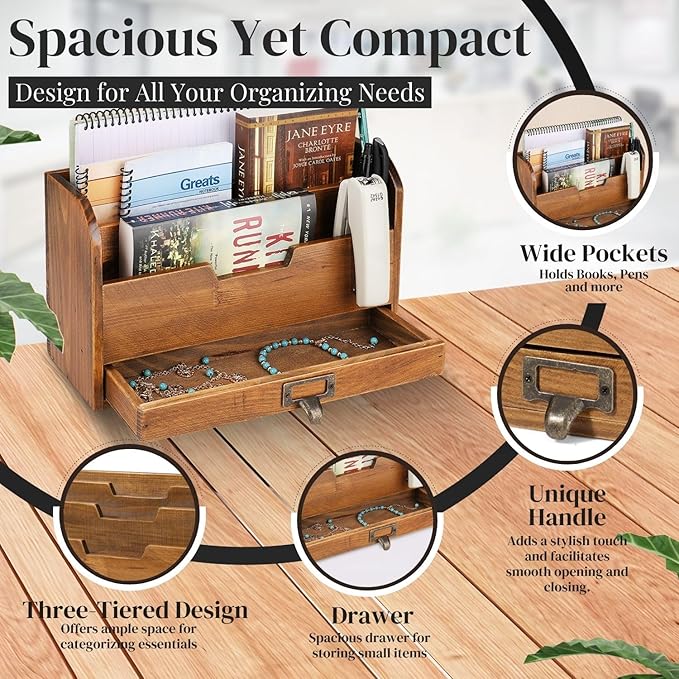 Com acabamento polido em madeira castanha rústica, adapta-se tanto a ambientes de escritório como ao lar, sendo também uma excelente opção para organizar joias, perfumes ou acessórios decorativos.