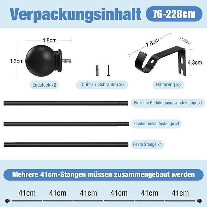 Comprimento útil após montagem: 87–243 cm
