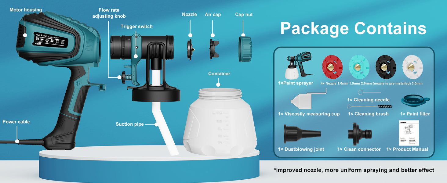 Motor de 700W para atomização forte, garantindo uma pintura mais homogénea.