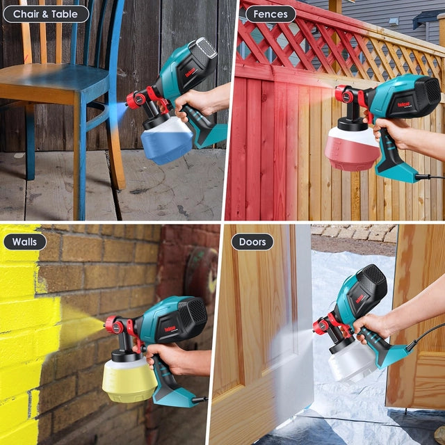 Comparado com o pincel e o rolo tradicionais, esta maquina ajuda-te a poupar energia na pintura de portas de madeira e metal, decks, cercas, tetos, móveis, paredes, armários, pisos, portas de garagem, etc.
